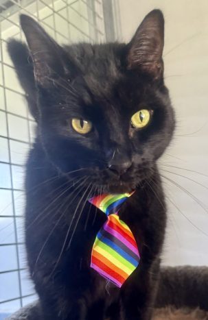 Born on Halloween, Baby is big, striking, and impossible to miss — but don’t let his size fool you. He’s a gentle giant, incredibly friendly, and totally tolerant of everyone he meets. He even gets along beautifully with small, social dogs, making him a perfect fit for multi-pet households.
