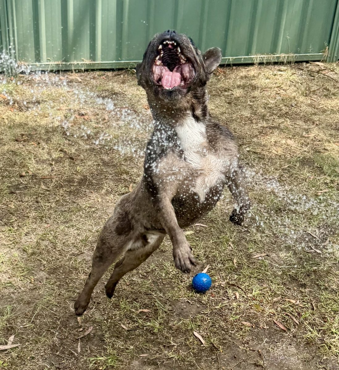 Once he feels comfortable, Bane’s true personality shines — he’s affectionate and loves being near his person. He’s a big goof at playtime, especially if there’s toys, water or a garden hose involved! When he’s not busy playing, Bane is perfectly content being a couch potato and soaking up the quiet vibes.