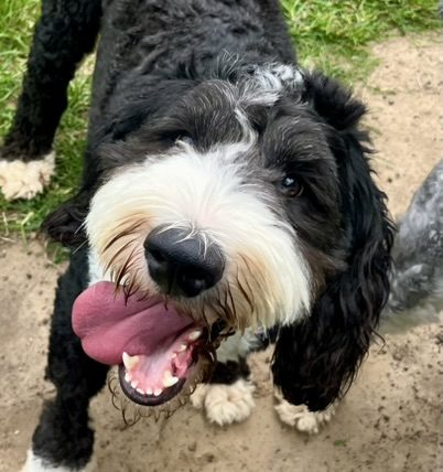Meet Gino, a smart, playful, and affectionate 2-year-old Sheepadoodle (Old English Sheepdog × Poodle) with a big heart and an even bigger zest for life.